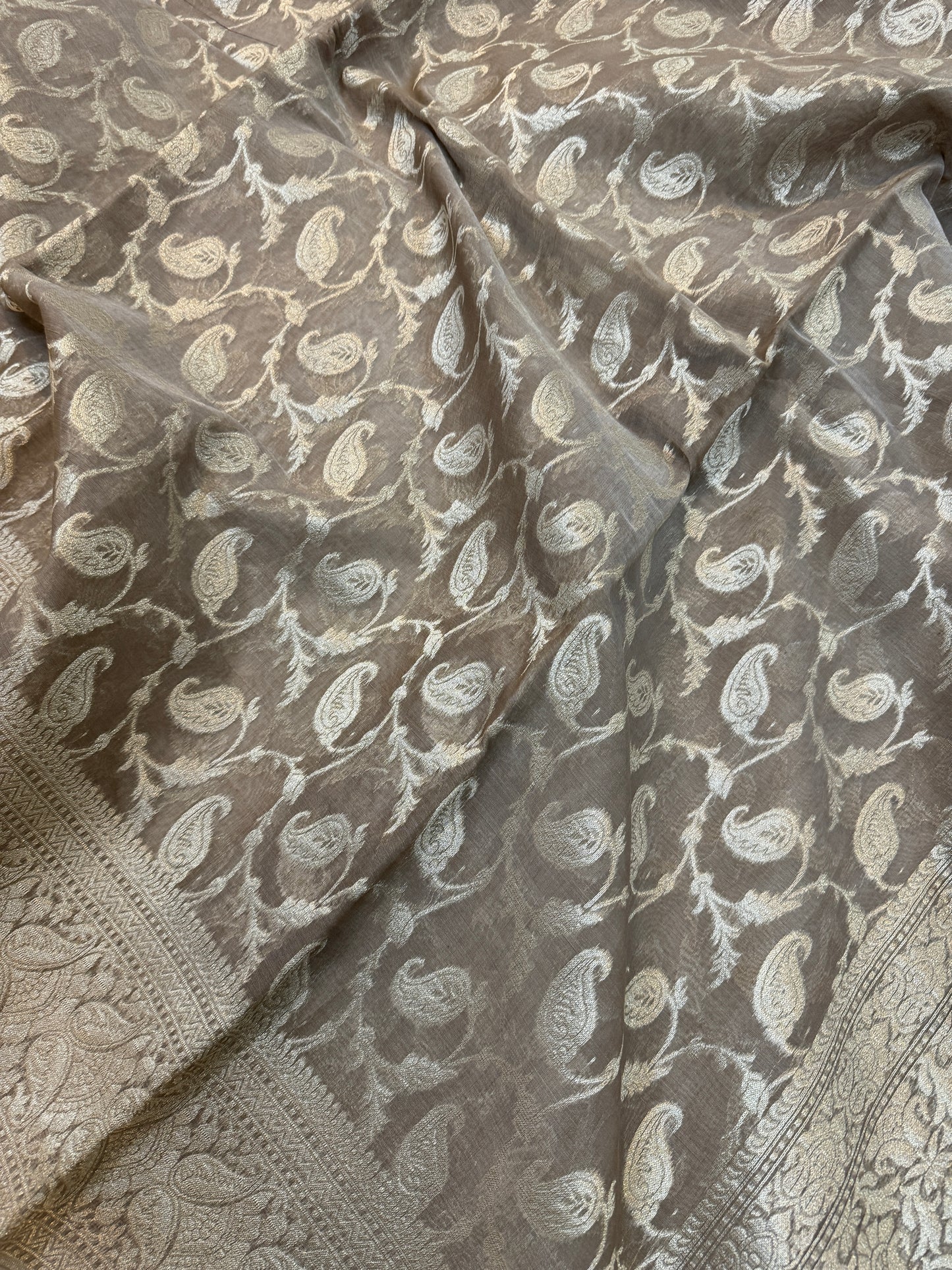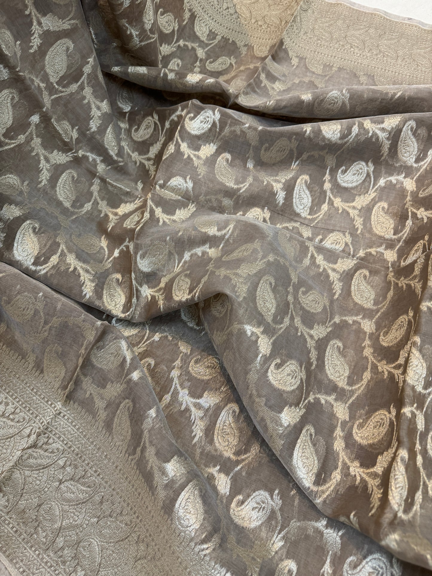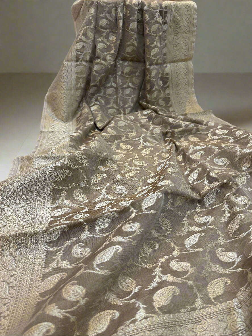 Grey Pure Cotton Banarasi Saree with All-Over Hand Weaving