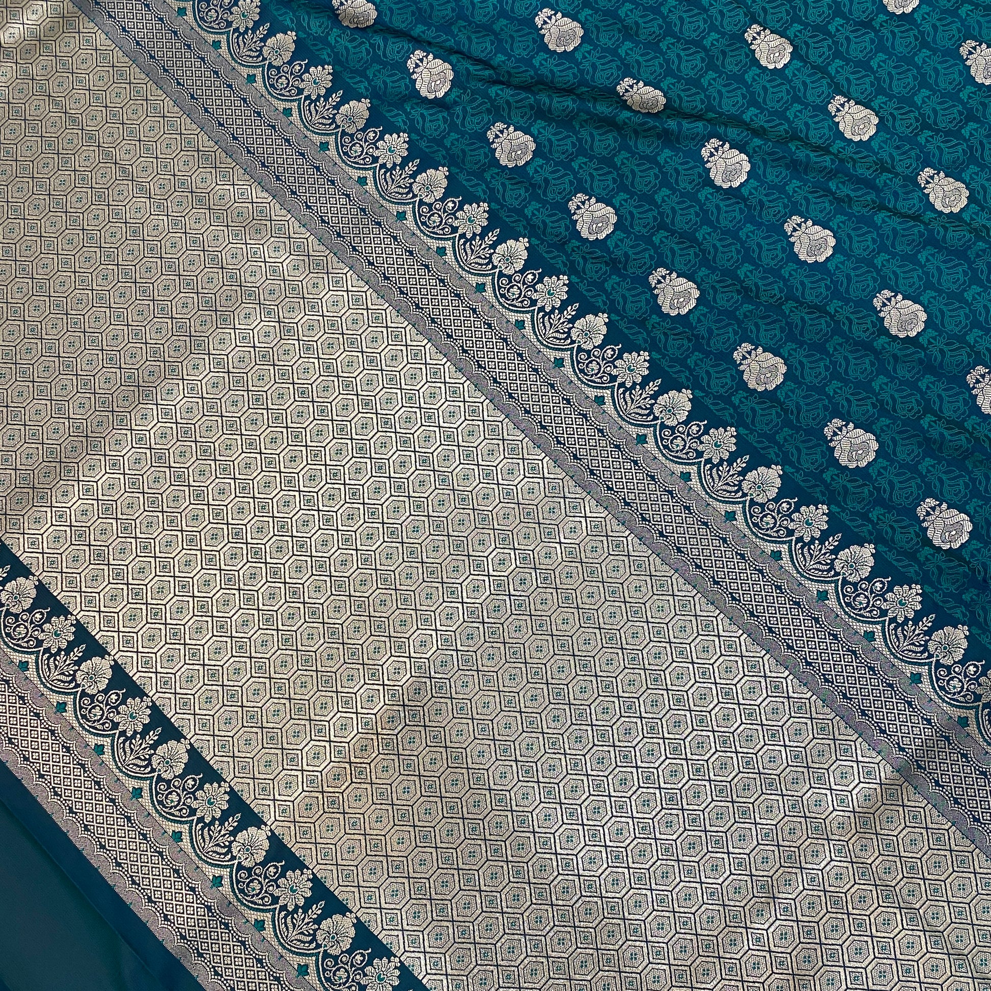 Luxe Teal Blue Pure Silk Handwoven Banarasi Couture Saree