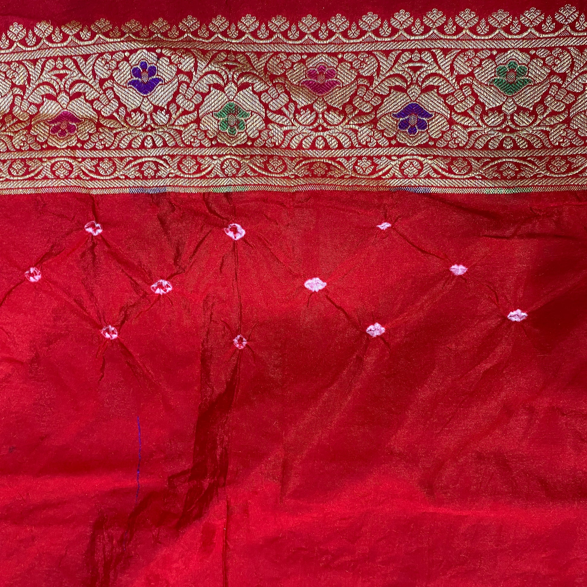 Pink & Red Pure Georgette Bandhani Banarasi Saree with Minakari Weaving