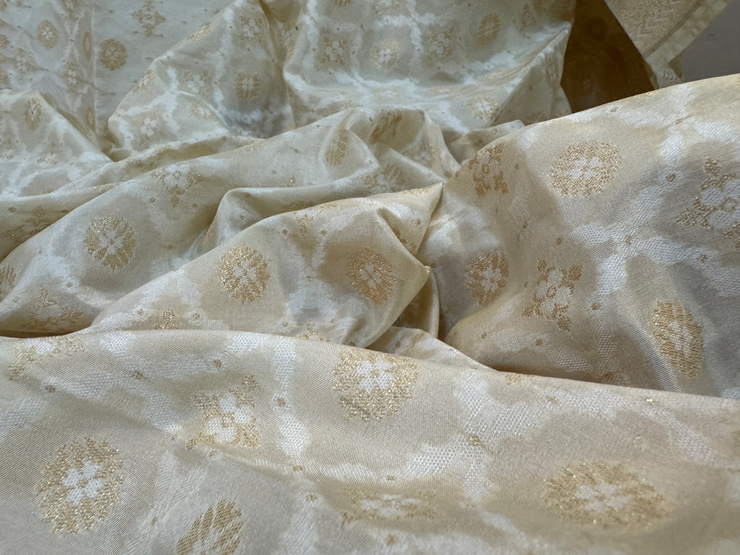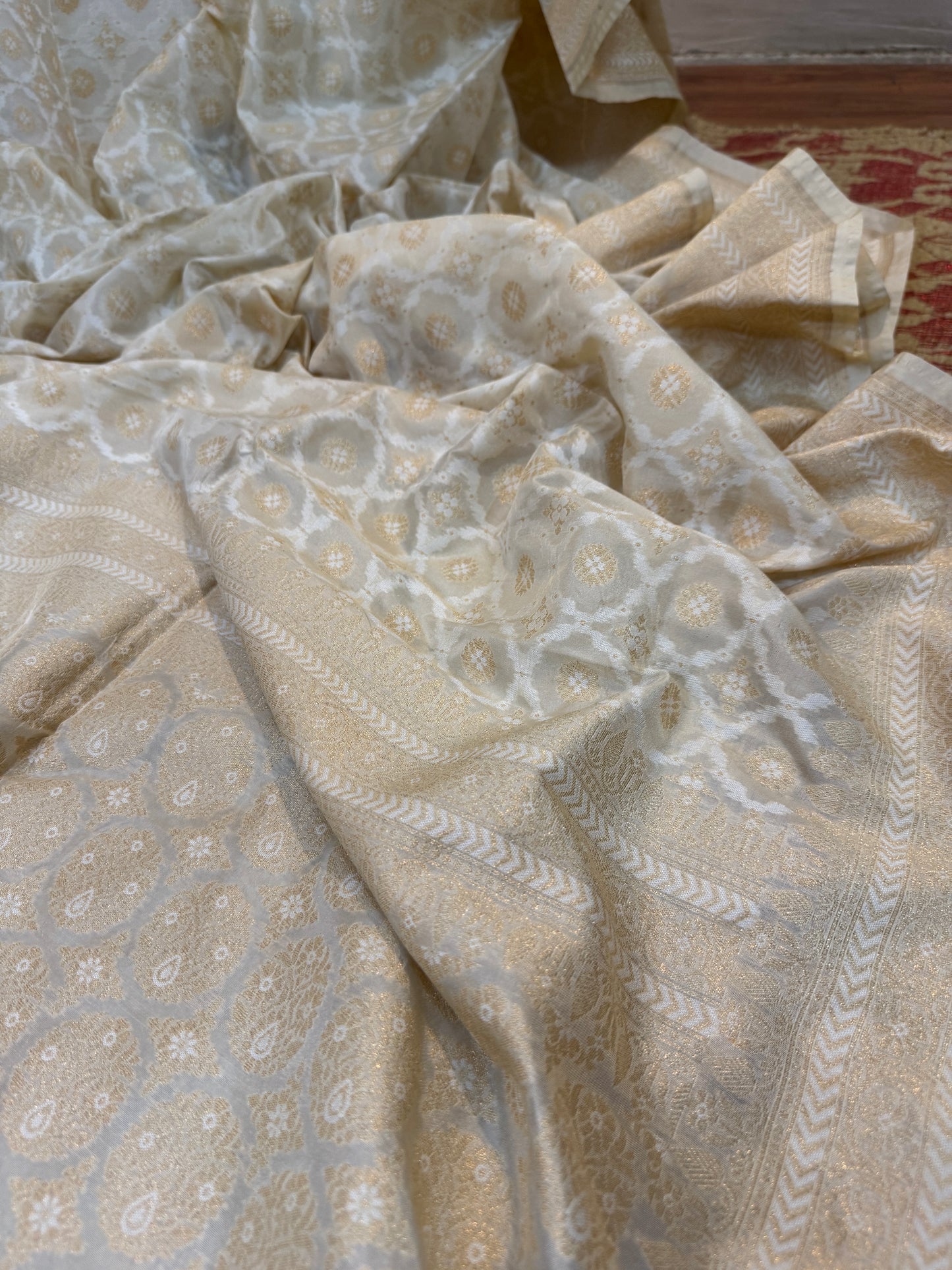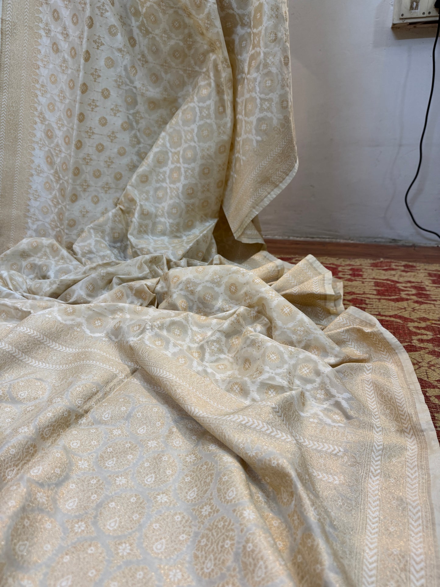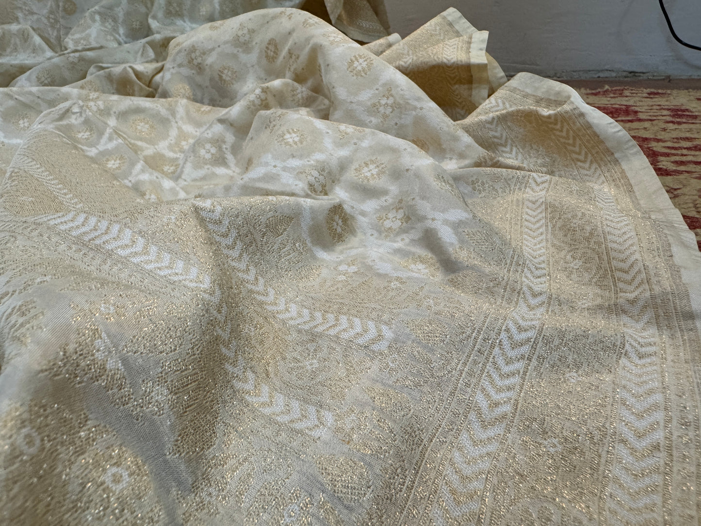 White Pure Cotton Handloom Banarasi Saree with All-Over Handwoven Work